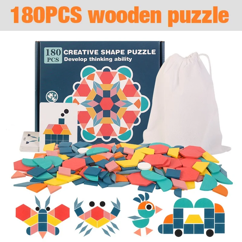 180 шт. Деревянные 3D головоломки Tangram Монтессори Обучающие игру...