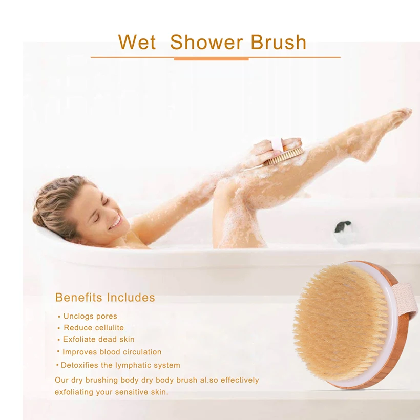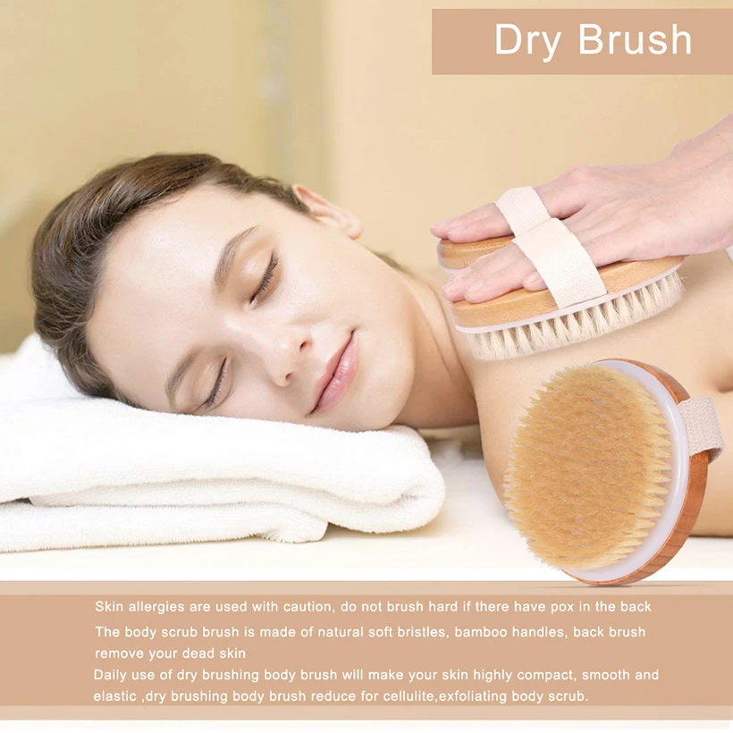 Щетка для ванны из натуральной щетины натуральная портативная дорожная Массажная щетка из конского волоса, деревянная сухая щетка, отшелушивающая щетка для душа D30