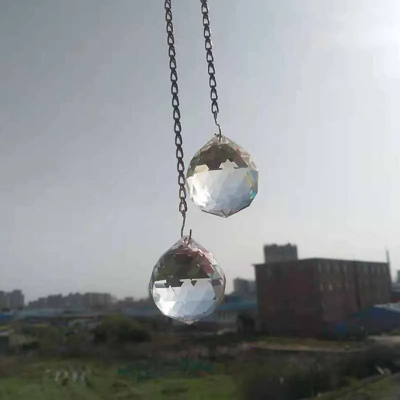 2 шт. 30 мм прозрачный хрустальный многоугольный шар, перфорированные подвесные бусины handelier, декоративная атмосфера, хрустальный шар, оптическое стекло