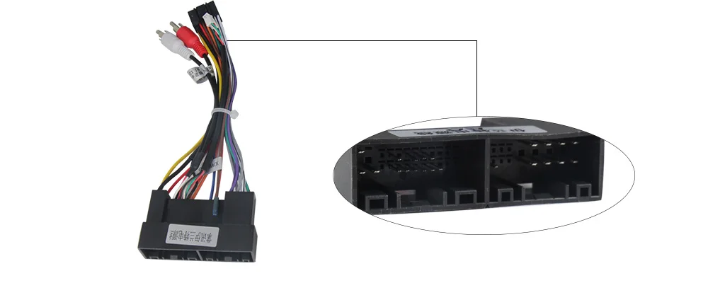 3) кабель обнаружения заднего хода ④ (коричневого цвета) подключен к красному кабелю ③, идущему от кабеля видеовхода