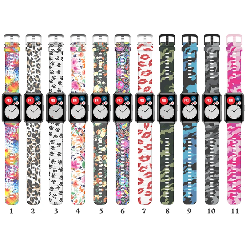 Силиконовый ремешок для часов Huawei, подходит для умных часов, сменный цветной модный браслет с принтом, аксессуары для браслетов