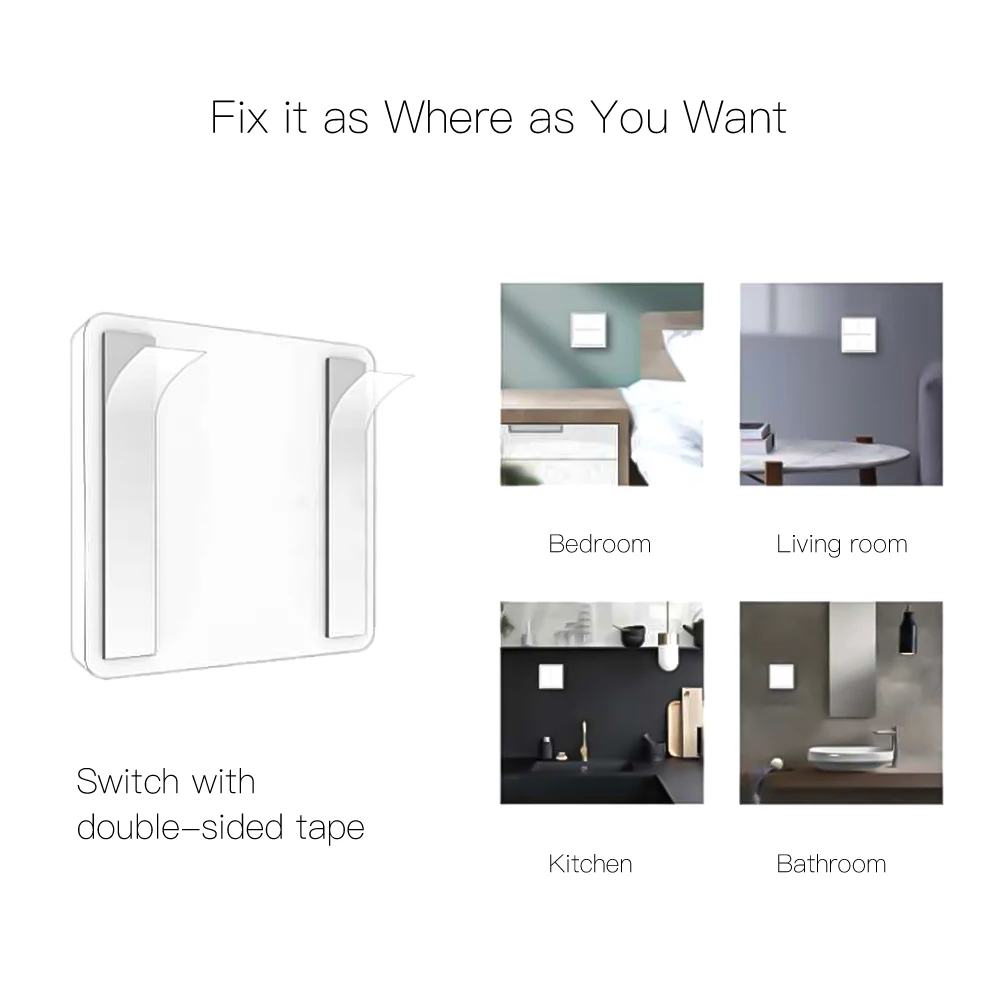 3. Компактный Магнитный дизайн: это беспроводной настенный выключатель при подключении к стене, пульт дистанционного управления при отключении. Это может быть удобно носить на балкон, спальни, кухни, кабинета, и многое другое Благодаря компактному размеру с толщиной всего 1,3 см.