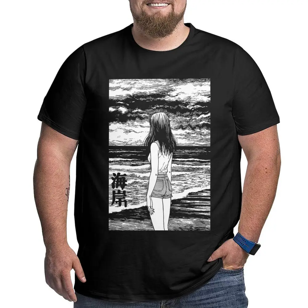 Мужская хлопковая футболка с вырезом под горло, размеры до 6XL