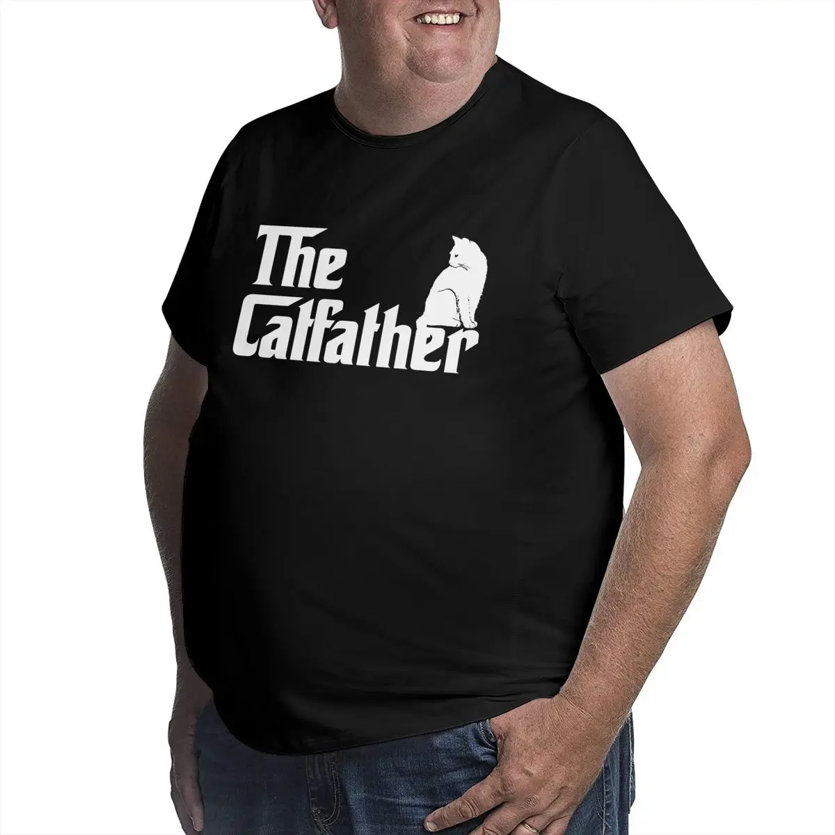Футболка мужская с принтом "Папа-кошка", топ с круглым вырезом, большой размер 4XL 5XL 6XL, для подарка на День отца