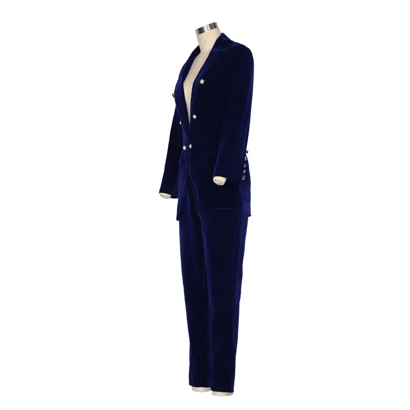Осенне-зимний бархатный элегантный Блейзер и брюки, костюм из двух предметов, офисный Женский Повседневный Элегантный брючный комплект, уличный деловой костюм