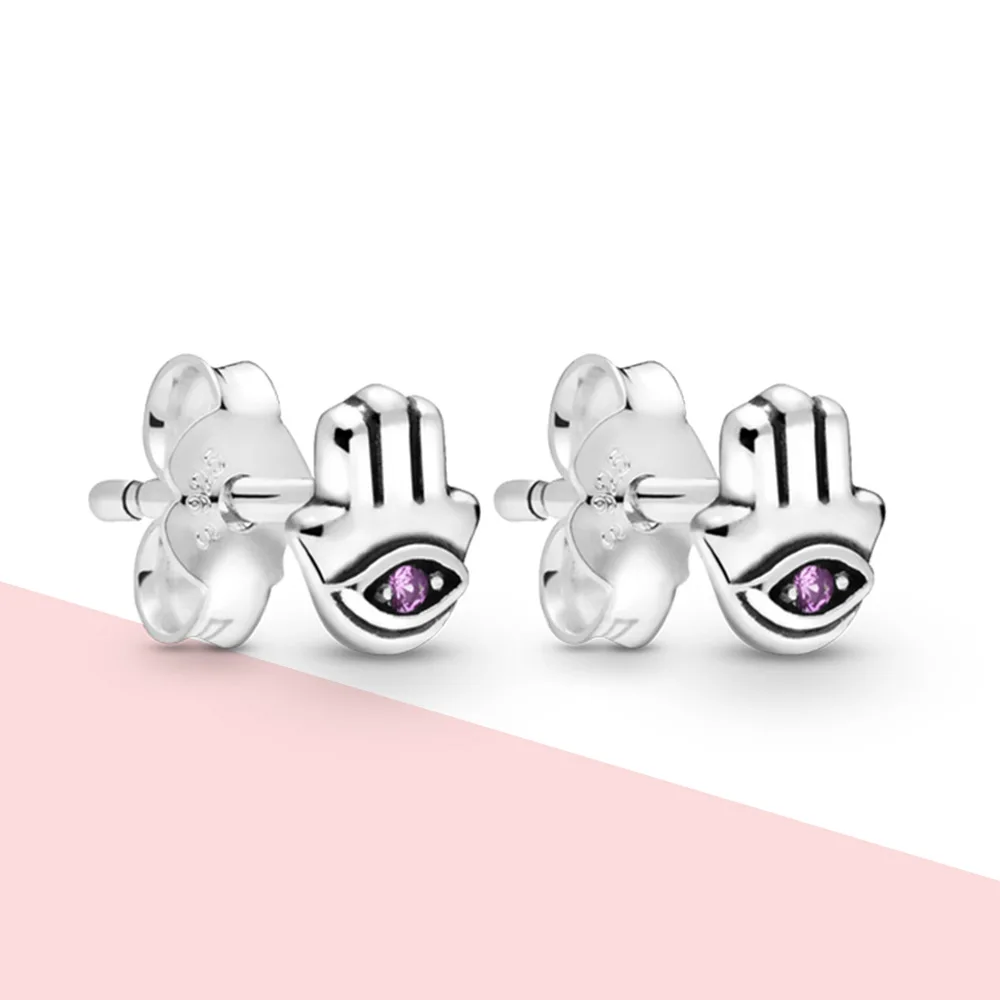 Оригинальный мне мой серьги-гвоздики в форме хамса с украшением в виде кристаллов для женщин 925 стерлингового серебра серьги серебристого цвета; Бижутерия сделай сам подарок
