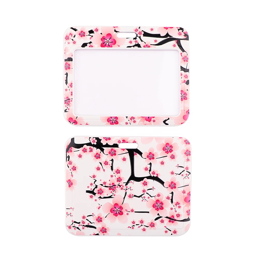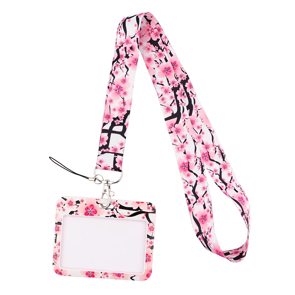 Брелок JF717 с цветами вишни, ремешок с цветочным принтом, держатель для удостоверения личности, пропуска, мобильный телефон, USB-разъем