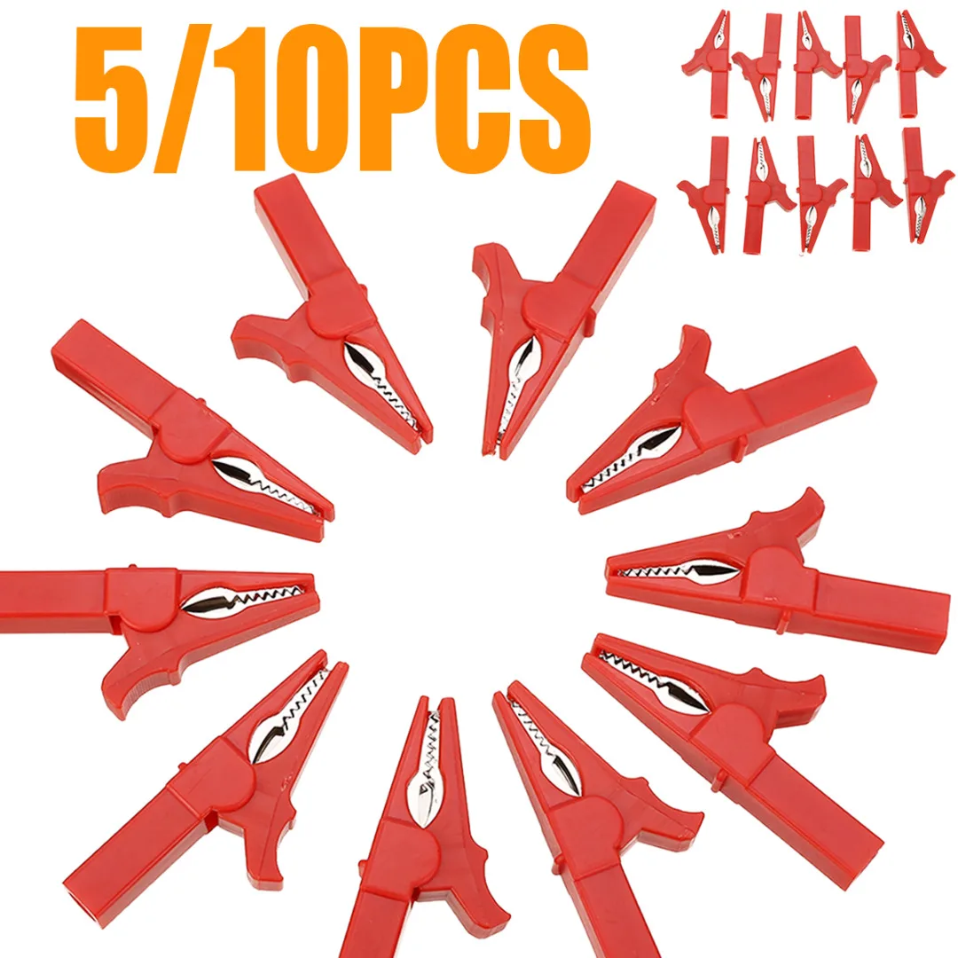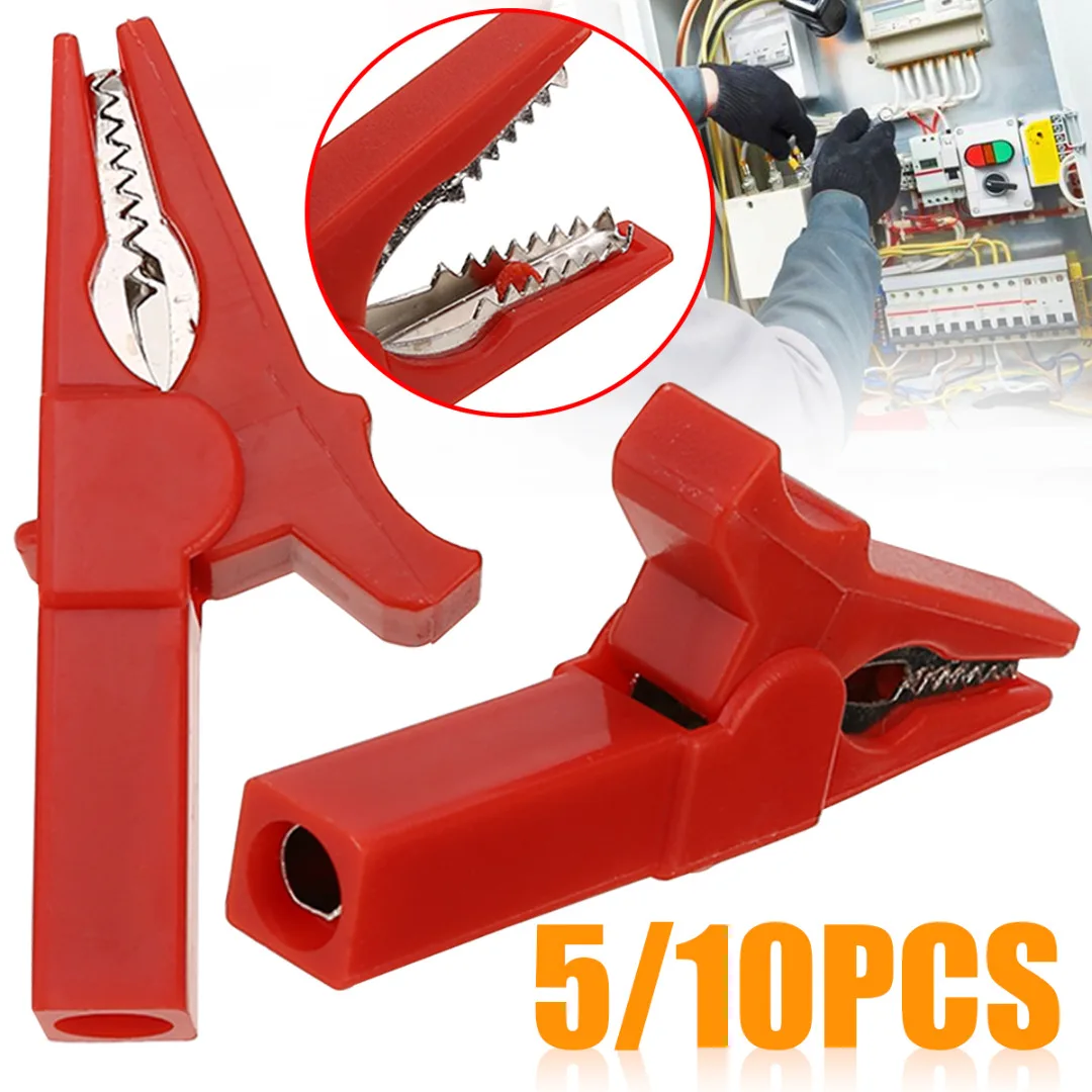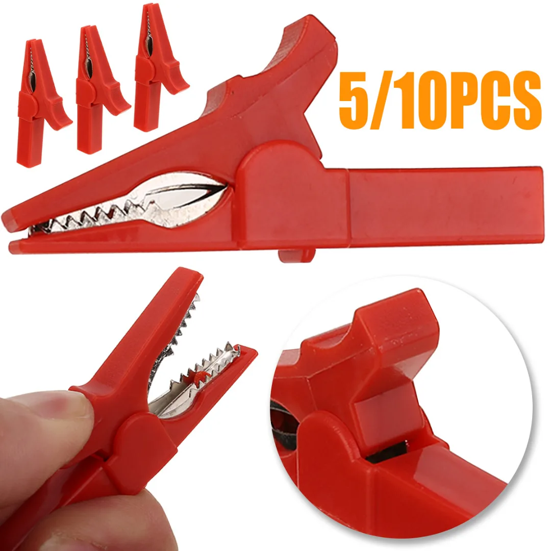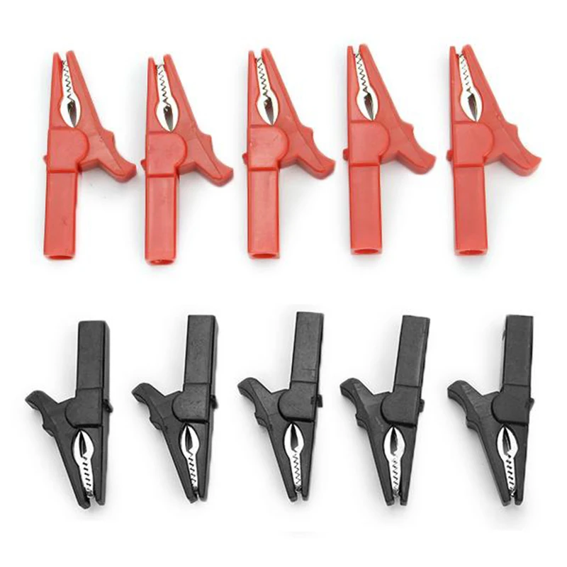 Зажим-крокодил медный, пластиковые зажимы типа крокодил, красный, черный, 5 шт.10 шт., 55 мм