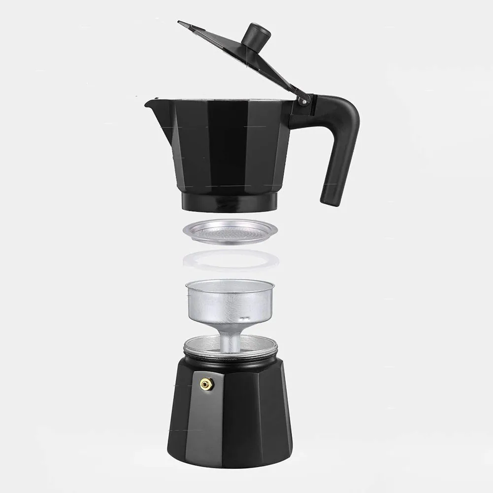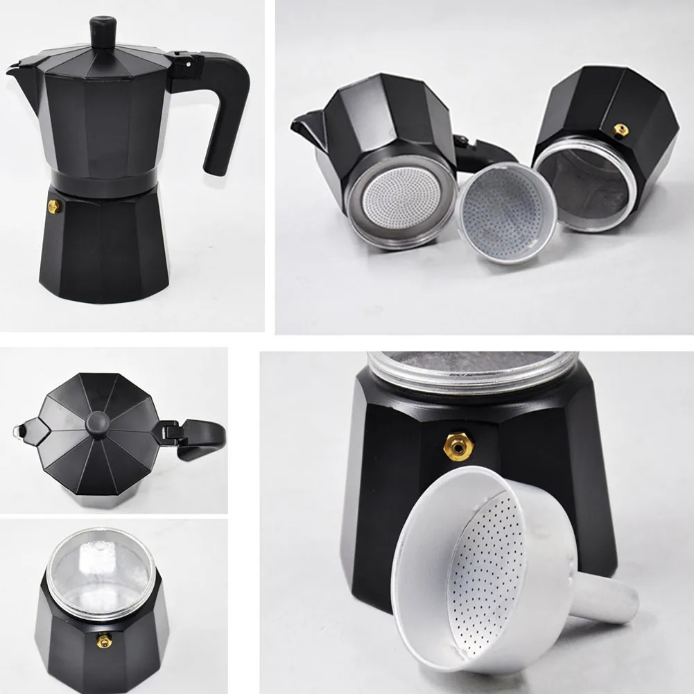 * Горшок Moka представляет собой двухэтажную структуру, расположенную в нижней части кипения в воде после кипения, он оснащен порошком acoffee сетчатого фильтра в верхней половине горшка