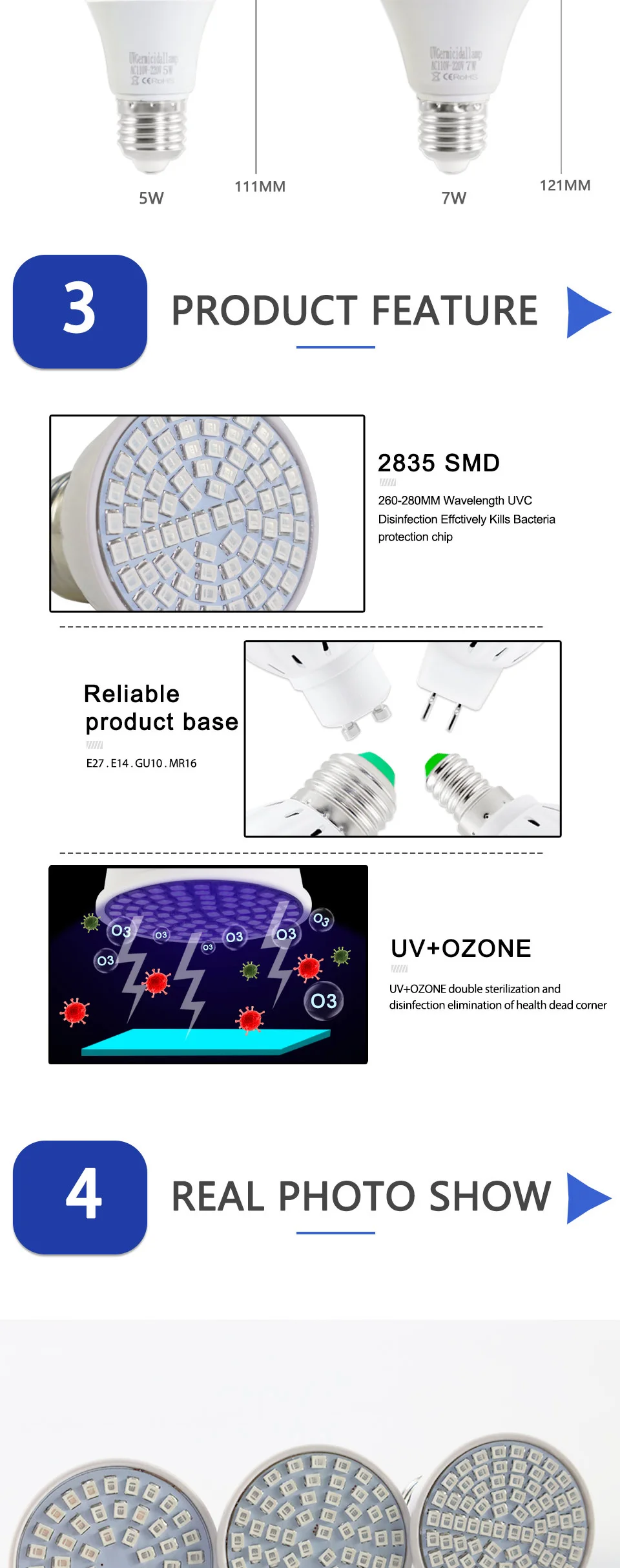 Ультрафиолетовый свет UVC бактерицидная дезинфекционная лампа AC 220 В E27 светодиодная лампа УФ стерилизатор озоновый светодиодный точесветильник светильник убивает клещей бактериальный