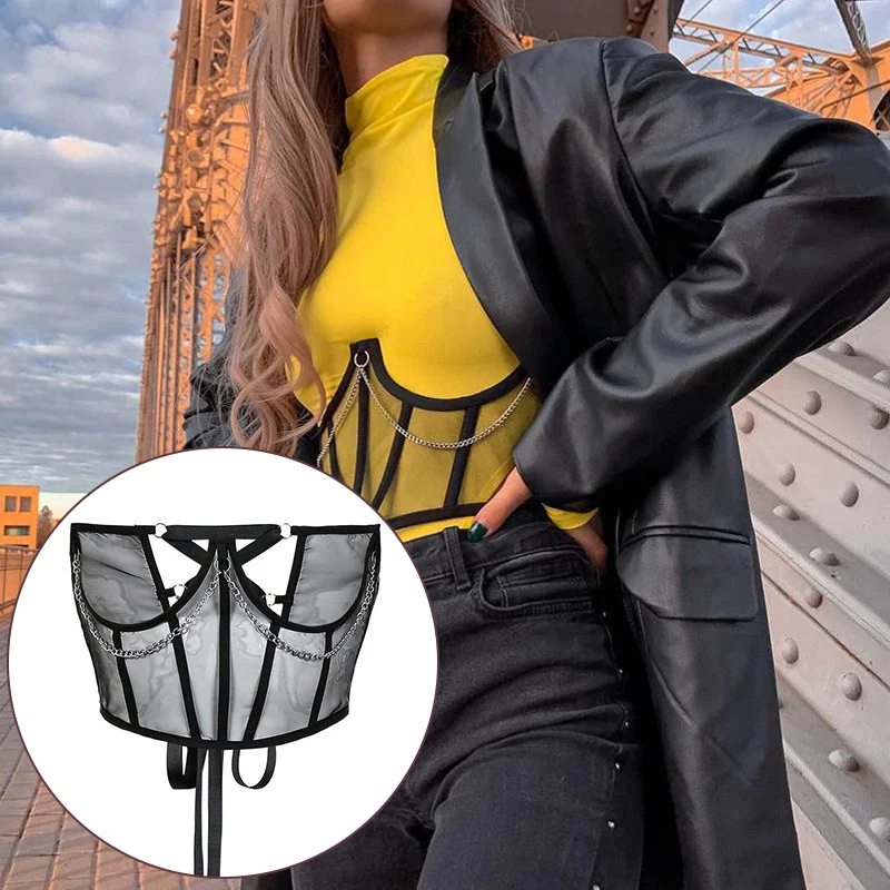 Женский сетчатый укороченный корсет с металлической цепочкой