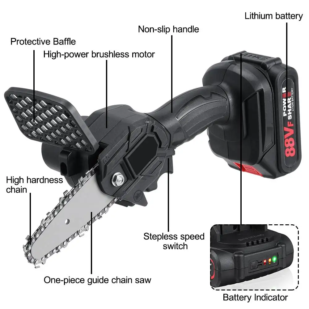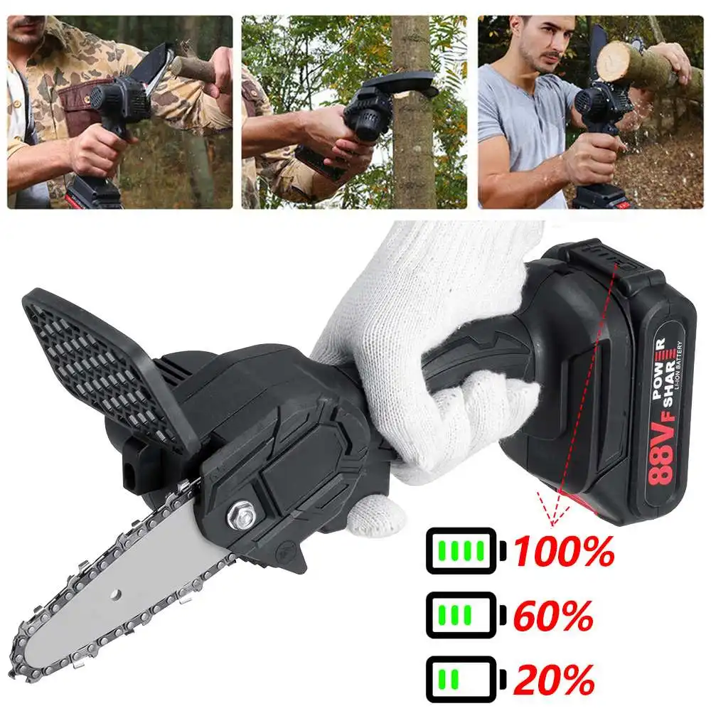 Особенности:-Аккумулятор с цифровым дисплеем, удобный.-С защитной перегородкой, предотвращает брызги опилок во время процесса резки.-Эргономичная ручка, которая очень удобна и безопасна для переноски.-Мощность литиевой батареи: Попрощайтесь с проблемой поиска источника питания.-Простота в использовании: Нет необходимости разбирать, поверните винт, чтобы отрегулировать герметичность цепи.-Эффективное рассеивание тепла: конструкция нескольких выпускных выходов на фюзеляже может эффективно предотвратить горение.-Безопасность пилы, эффективно повышает эффективность вашей работы.-Цепи пилы закаливают, закаляют и отжигают. Они долговечны, чем обычные цепи пилы.-Светильник вес тела, светильник и удобный, светильник вес конструкции, долгое время хранения и не устают руки.-Двигатель из чистой меди, сильная мощность, быстрая резка, повышение эффективности.-Практичная, быстрая скорость, низкое энергопотребление.-Переключатель отличного качества, быстрая и медленная регулировка, плавное изменение скорости.-Для вырубки и обрезки древесины.-Идеальный инструмент для вырубки отвечает различным потребностям многих ситуаций.