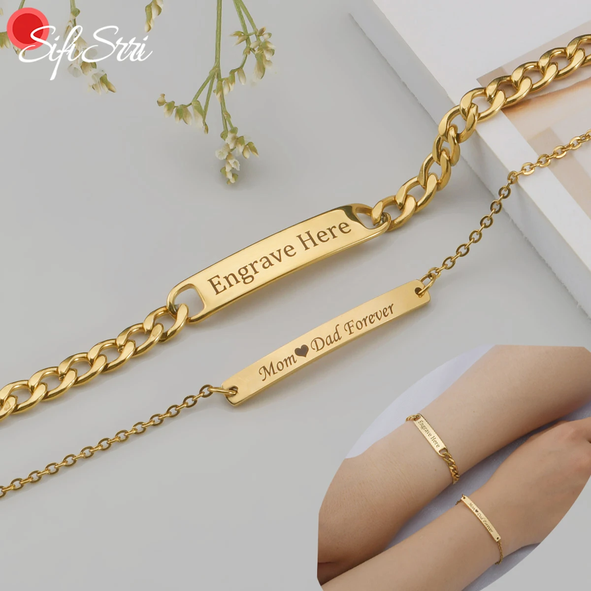 Sifisrri гравировка имени даты двойная искусственная Нержавеющая сталь Регулируемая кубинская цепь для мужчин для женщин ювелирные изделия для помолвки подарок