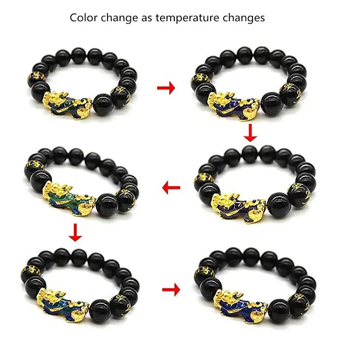 Китайский FengShui Pixiu цвет унисекс обсидиан камень Бусы Браслеты...
