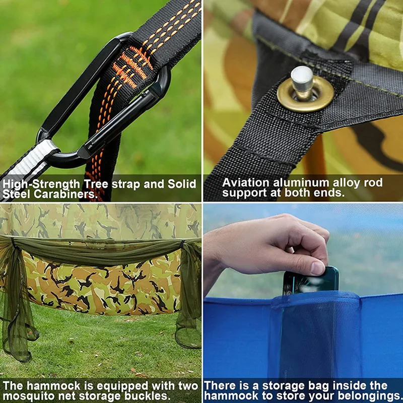 Гамак для улицы, подвесная койка для путешествий, кемпинга, пешего туризма, садовый портативный гамак на 2 человек, качели для сна с москитной сеткой, дождевой накидкой