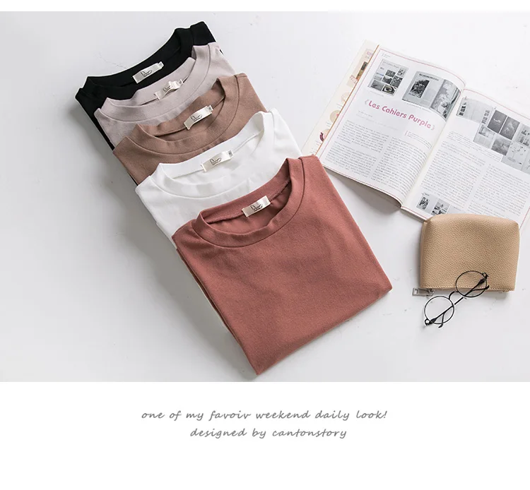 Женские топы, Однотонная футболка из чистого хлопка для женщин, лет...