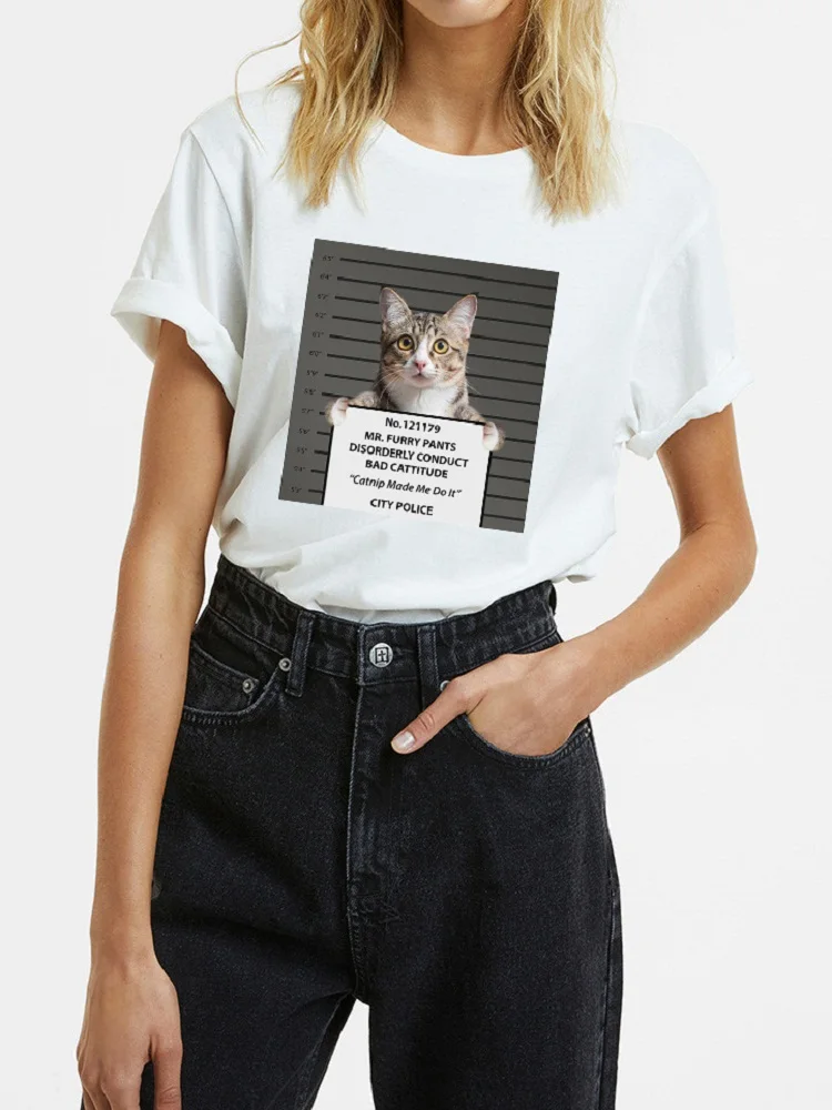 Футболка женская в стиле Харадзюку с изображением кошки и барабана