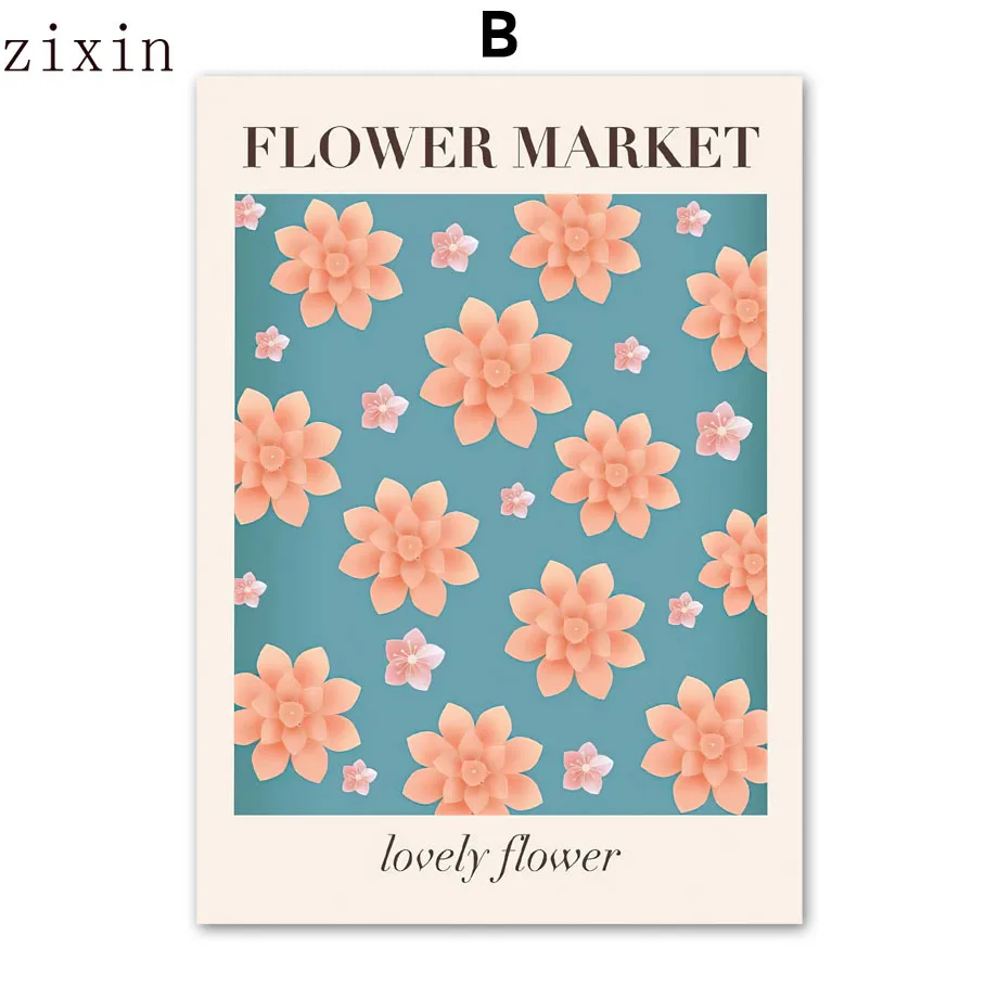 Абстрактный Цветочный рынок, красочный цветочный знак магазина, настенный художественный принт, скандинавский плакат, Картина на холсте, декоративные картины для гостиной