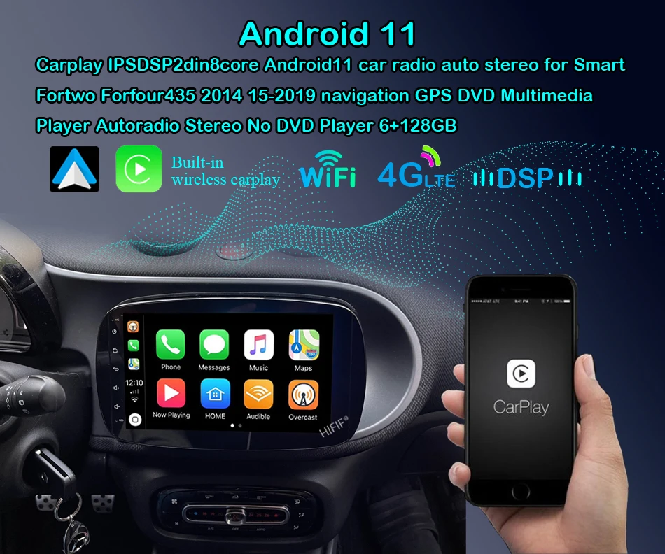 Автомагнитола 2 din, 8 ядер, Android 11, Автомагнитола для Smart Fortwo, Forfour, 435, 2014, 15 -2019, навигация, GPS, DVD, мультимедийный плеер
