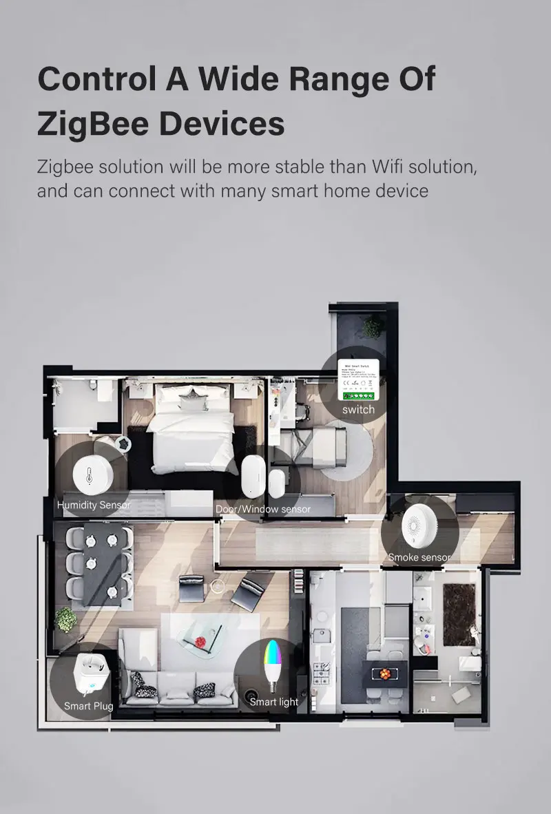 Обратите внимание, что любой продукт ZigBee должен использоваться с шлюзом, а модель нашей компании-самая легкая и простая в установке. В настоящее время Доступные устройства поддерживают около 30-50, что достаточно для небольших домов или жилых зданий.