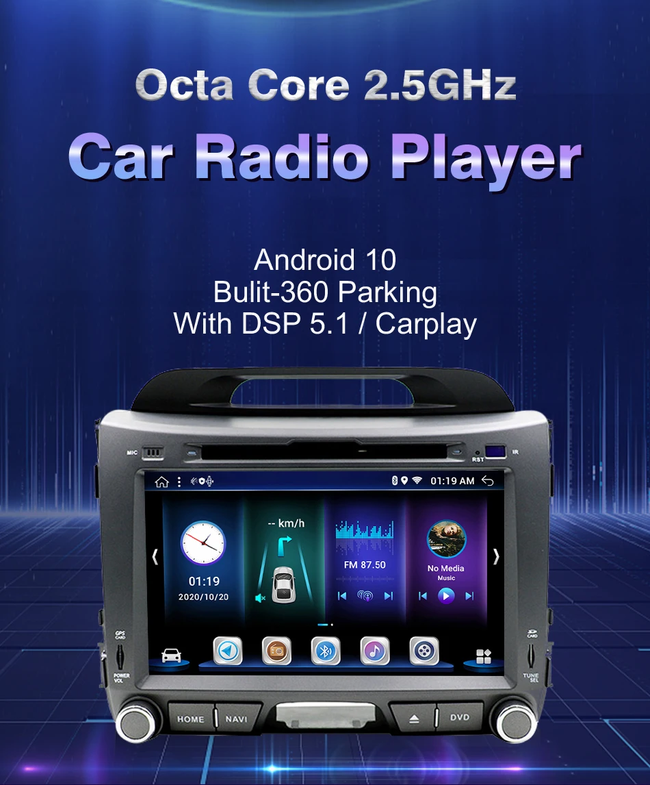 Автомагнитола Eunavi, мультимедийный видеоплеер с восьмиядерным процессором, ОЗУ 4 Гб, ПЗУ 64 ГБ, Android 10, головное устройство 2 Din, GPS, для KIA Sportage 2011, 2012, 2013, 2014, 2015