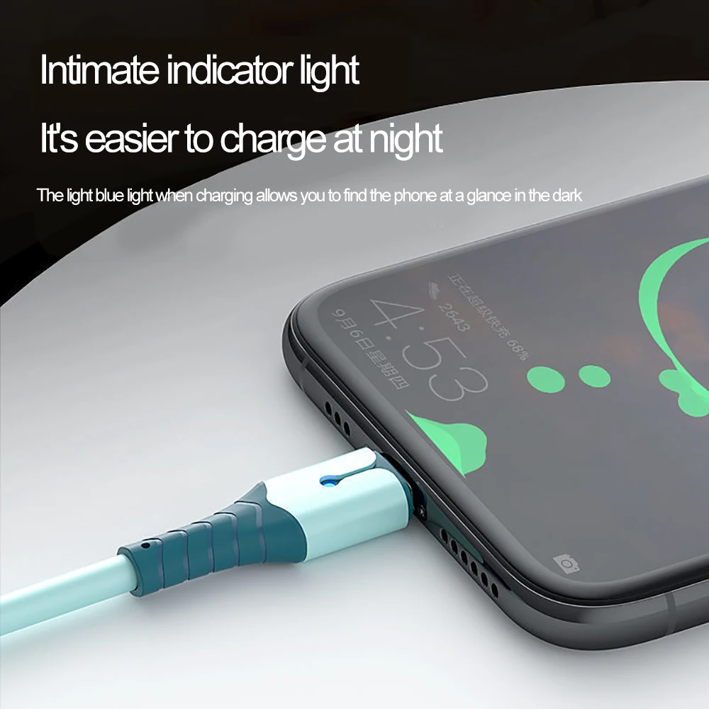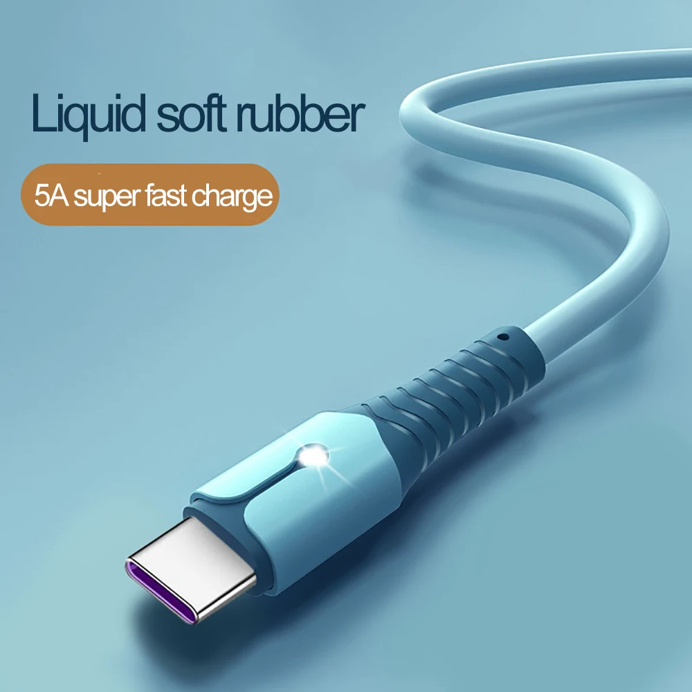 5A Быстрый зарядный кабель из жидкого силикона кабель для передачи данных с подсветкой подходит для iPhone 12 Pro Max Android TYPE-C Huawei телефонных кабелей