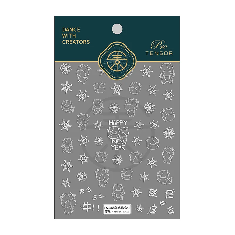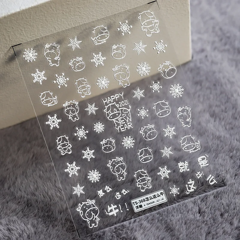 1 шт. 3D тисненые Белые снежинки корова Лось Рождественская елка клейкие наклейки для ногтей зимний Снеговик водная горка переводки для дизайна ногтей MJ26