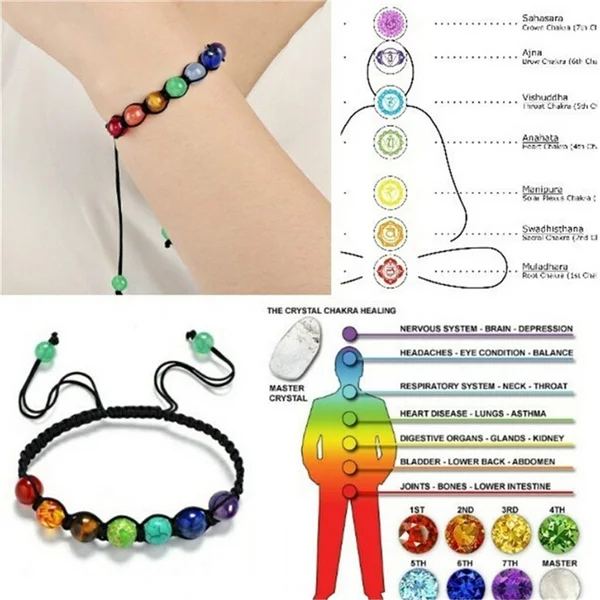 Браслет женский плетеный из натурального драгоценного камня, 7 чакр