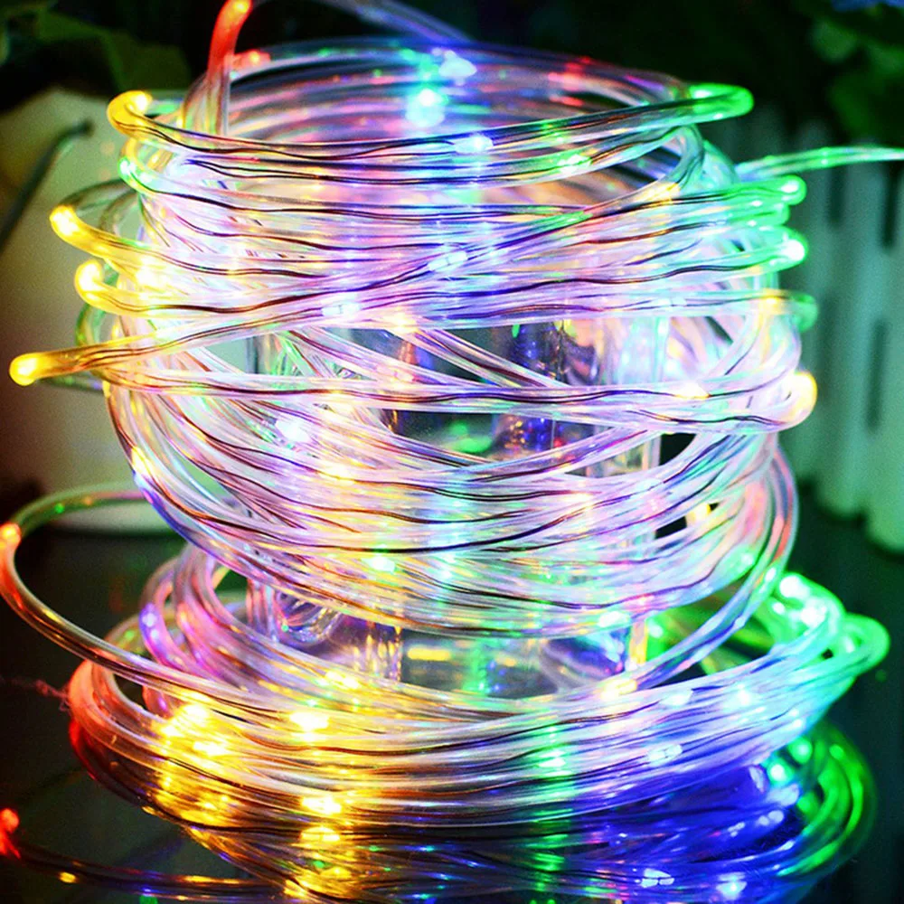 Солнечная Светодиодная трубка строка светильник ПВХ Медный провод газонный светильник s DIY красочные открытый сад забор для отдыха и вечеринок декоративный светильник 8 режимов