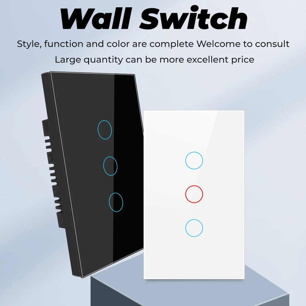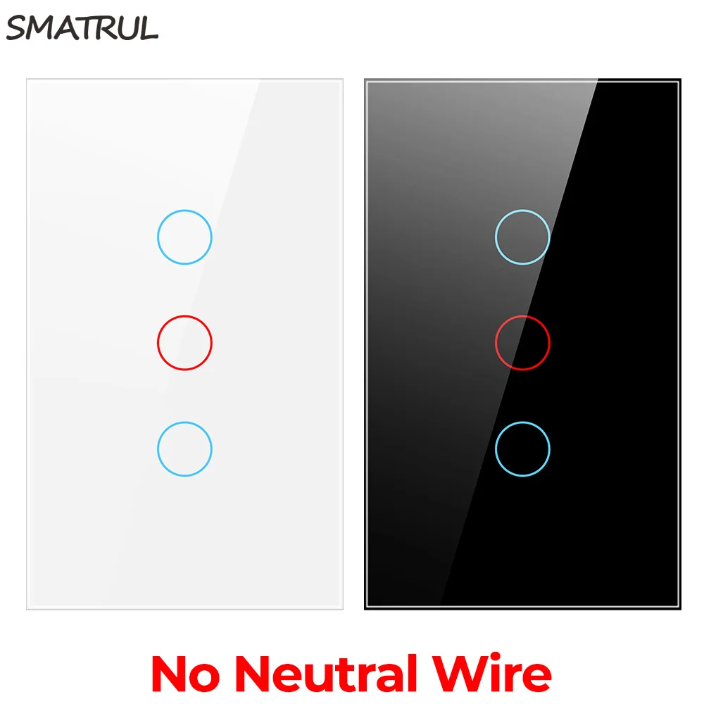 Умный сенсорный выключатель света SMATRUL, переменный ток, США, 220 В, 110 В, без нейтрального провода, настенная панель со стеклянным экраном, светодиодная лампа с управлением включением и выключением