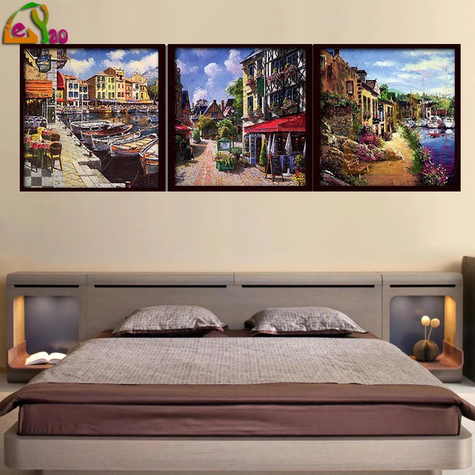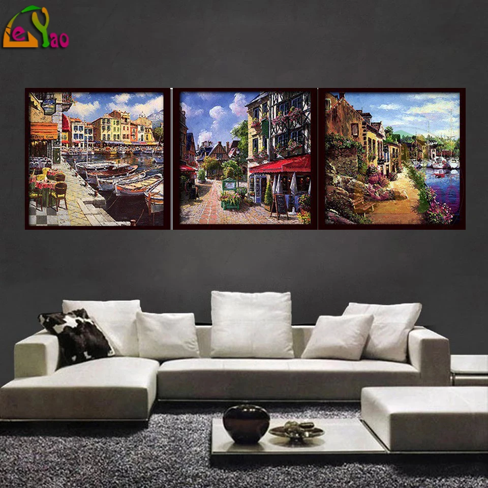 5D Diy Алмазная картина Триптих мозаика полная дрель Алмазная вышивка Холланд кварталы Пейзаж Вышивка крестом домашний декор подарки