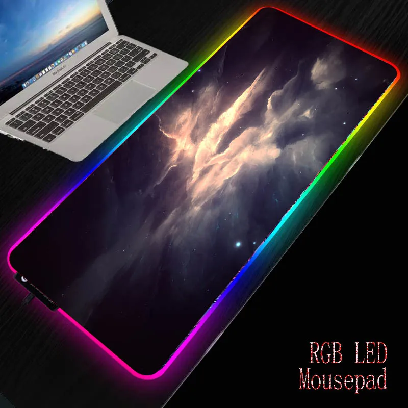 Большой игровой RGB коврик для мыши с изображением космоса, планеты...