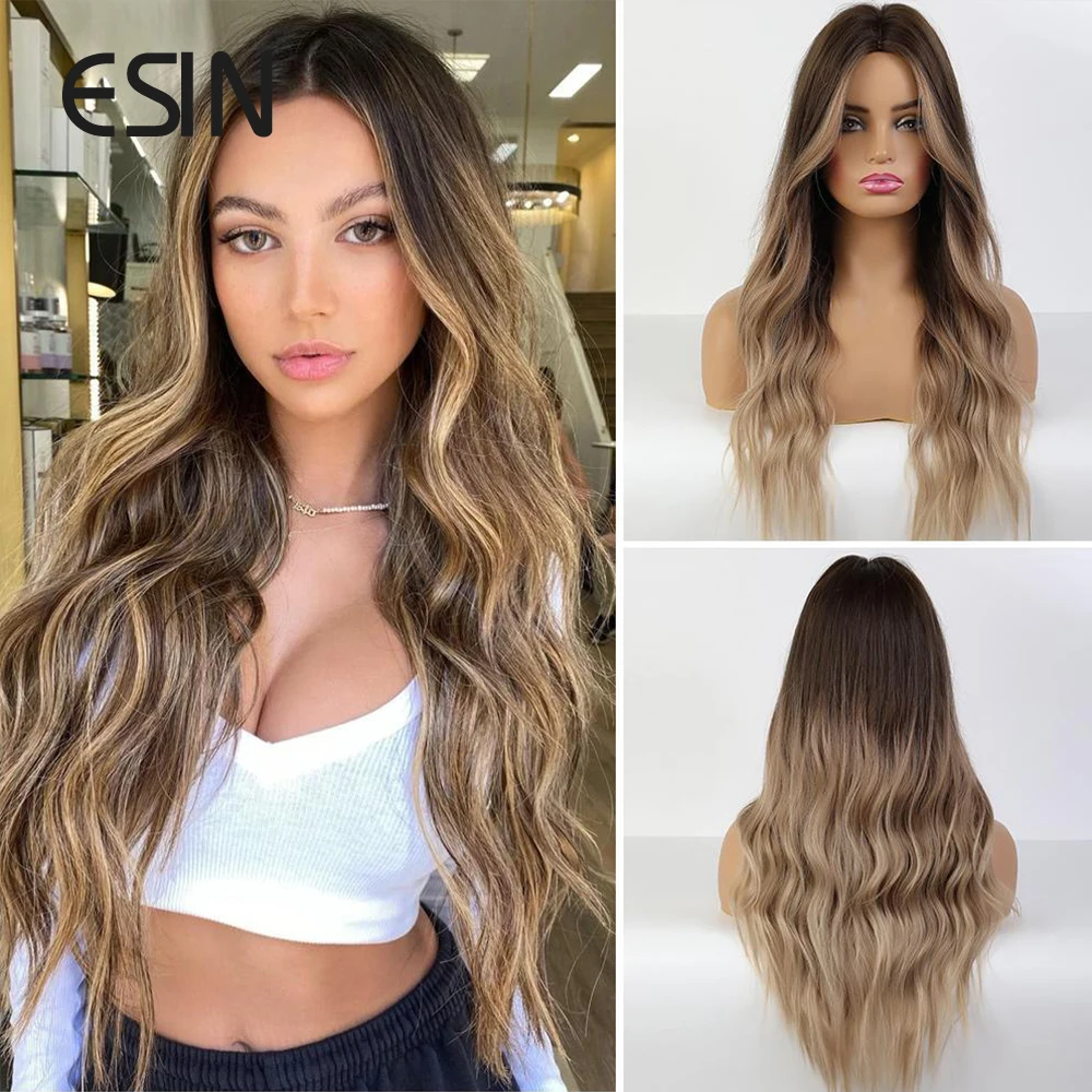 ESIN синтетический парик Омбре коричневый блонд длинные волнистые волосы парики для черных и белых женщин ежедневвечерние косплей парик термостойкий