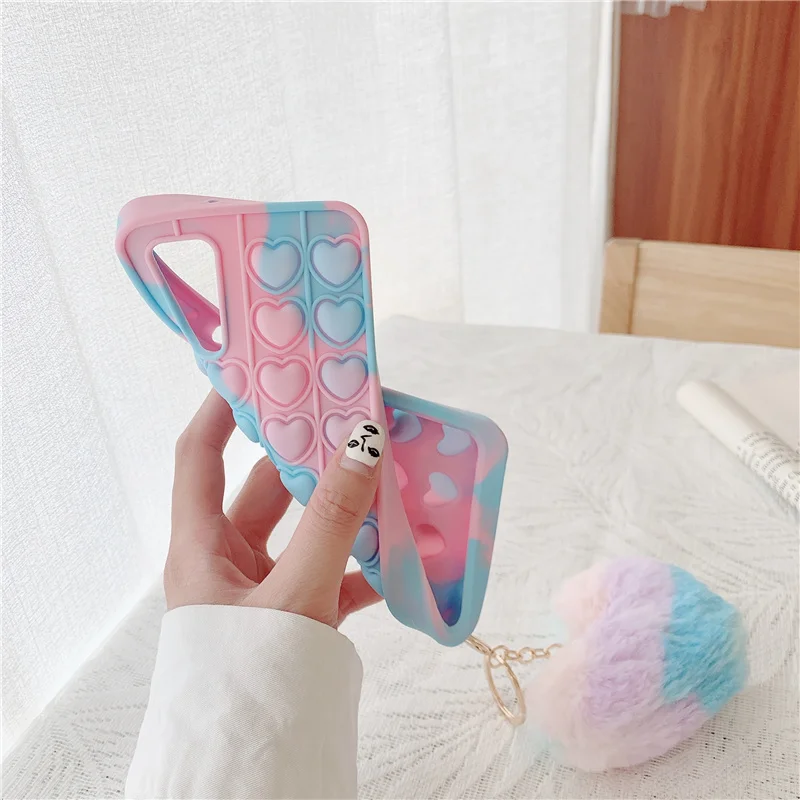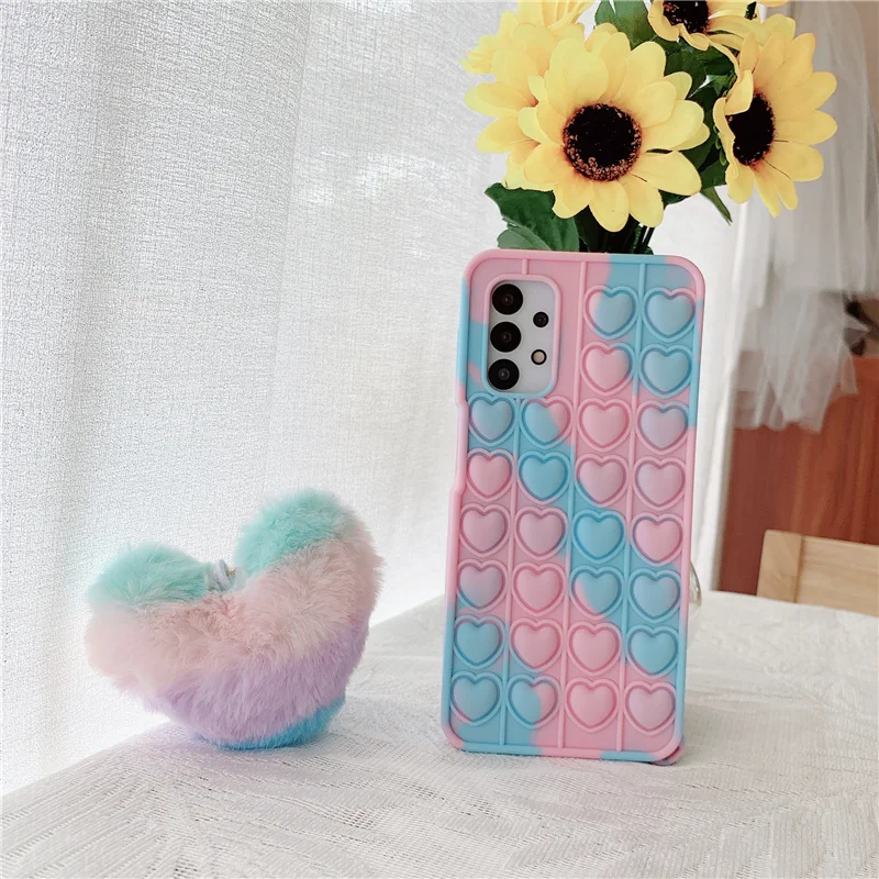 Оживите стресс пузырь силиконовый чехол для Samsung Galaxy A10E A11 A12 A20 A50 A30 A21 A31 с милым сердечком Меховая игрушка A71 A32 A02 крышка