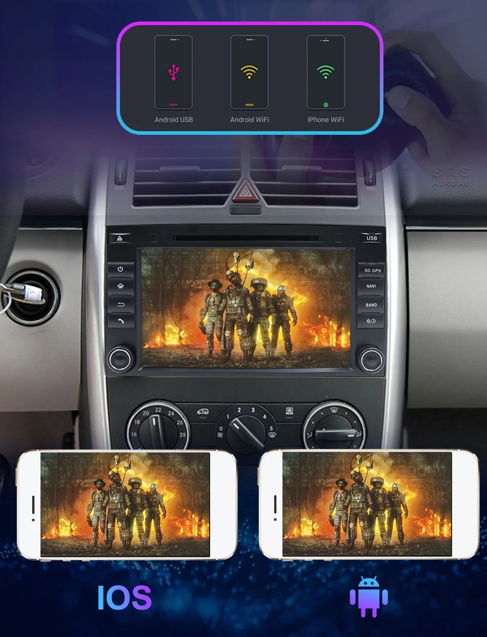 Поддержка зеркального соединения для устройств Android и IOS через usb-кабель или Wi-Fi. Это может обеспечить взаимный контроль между этим устройством и вашим телефоном