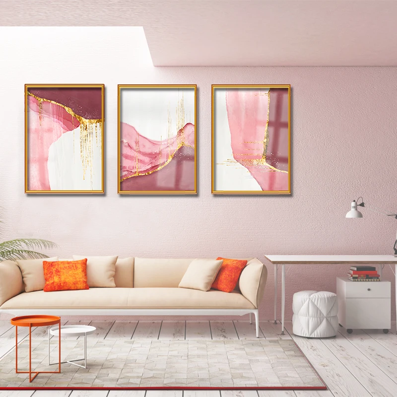 Скандинавская Золотая фольга, розовая Абстрактная Картина на холсте, домашний настенный художественный декор, печать и плакаты, украшение интерьера для дома, картины