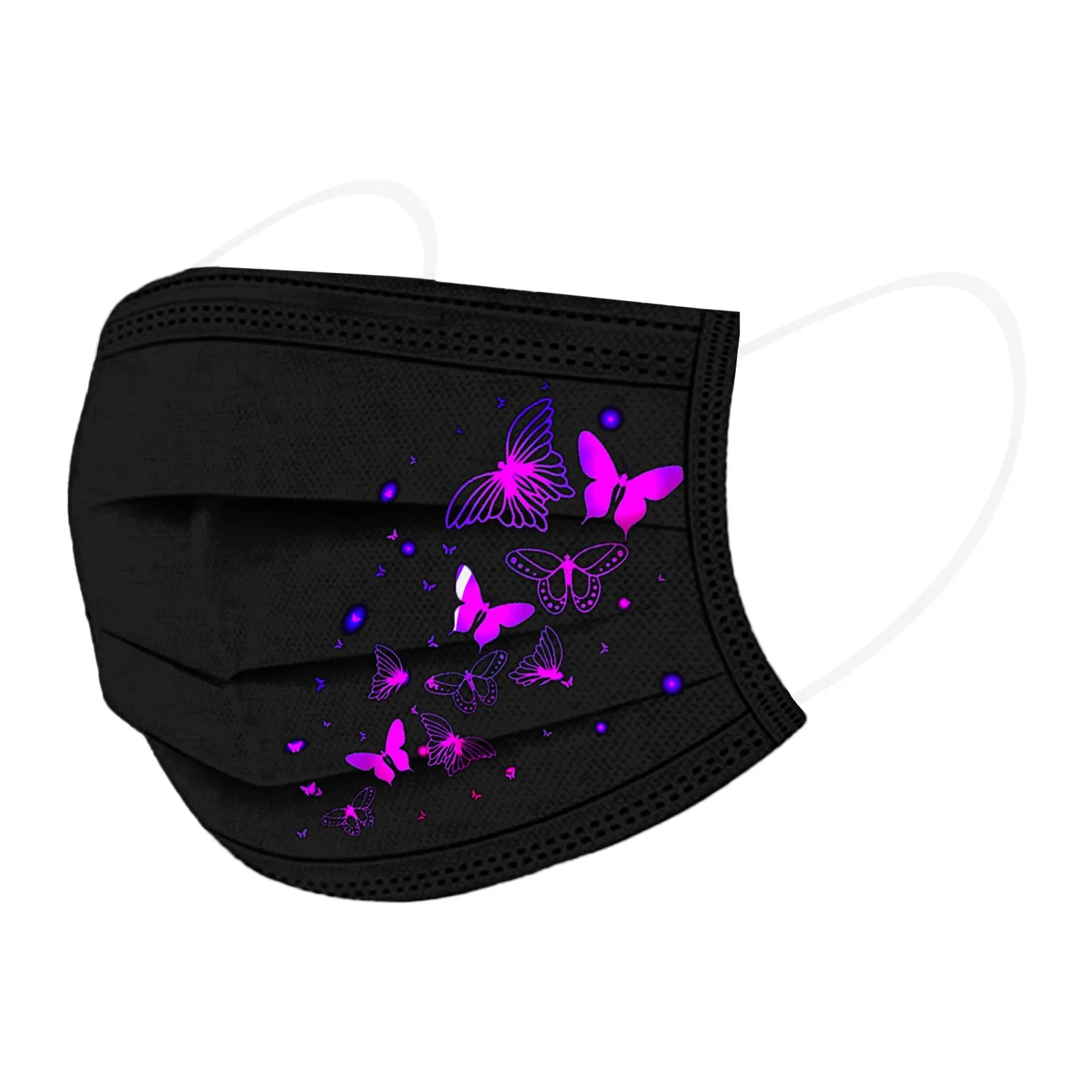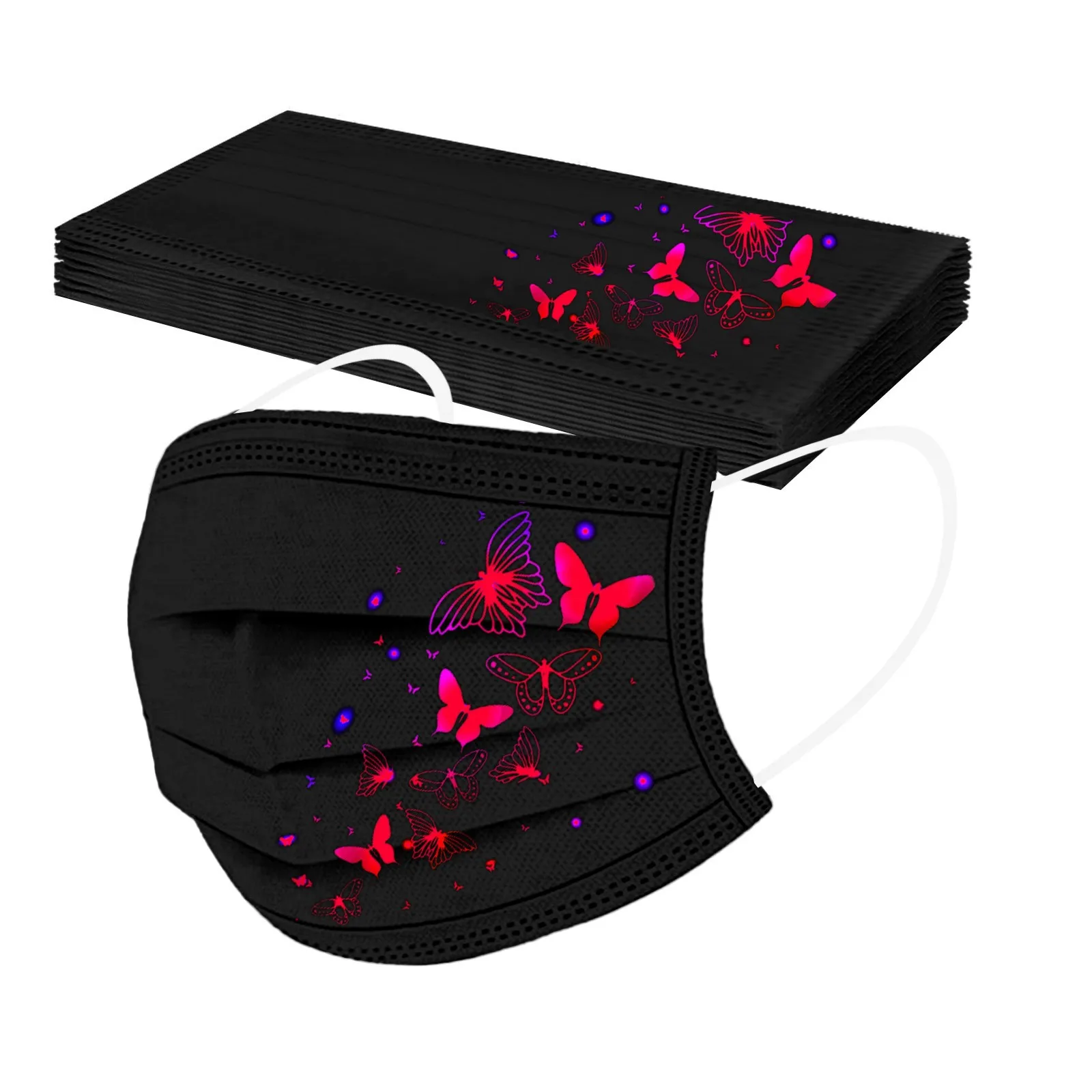 10 шт. маска для взрослых с принтом бабочки, тканевая трехслойная маска с фильтром из мелтблауна, 3-слойная одноразовая Защитная черная маска для лица