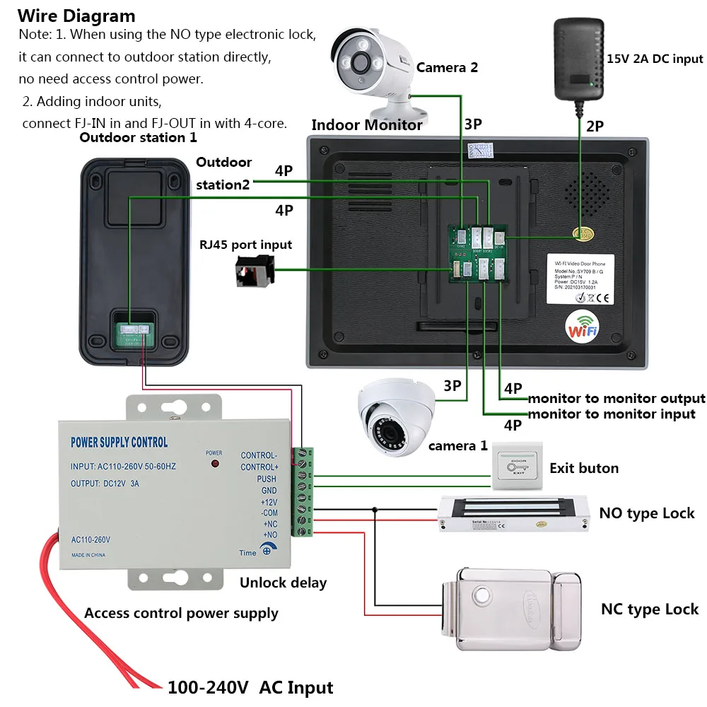 Простая установка самостоятельно с помощью адаптера и кабеля, которые мы предоставляем в этом комплекте, наружный блок может подключаться к крытому монитору с помощью проводного Кабеля 4P. Когда внутренний монитор подключен к беспроводному wifi роутеру или проводному сетевому кабелю, вы можете подключить мобильный телефон к крытому монитору, затем мобильный телефон также может записывать видео или открывать дверь и т. Д. Широко используется в виллах, квартирах, Дома, гостиницы, офисы, общественные здания и так далее.