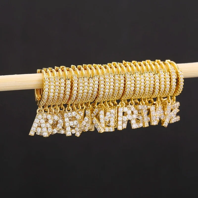 2021 Мода Медь микро паве кубический цирконий инициальный A-z буквы...