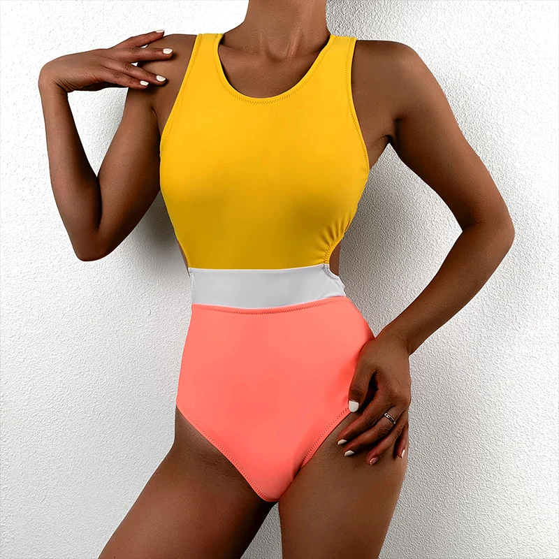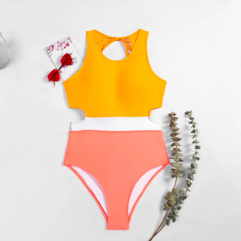 Женский слитный купальник Bikigoal, однотонный купальник с вырезами и мягкими чашечками, 2021