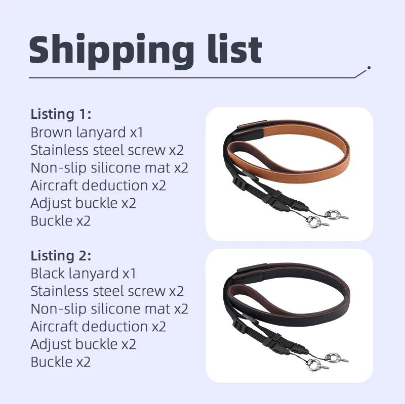 Характеристика:1. Освободите руки и облегчите воздушный полет,2. Доступны различные стили, подвесная горловина удобная,3. Винты из нержавеющей стали, прочные и противоскользящие,4. Удобно носить, длинная длина может быть скорректирована до 70 см, а Регулируемая пряжка соответствует привычкам ношения разных людей.Описание:Материал: кожа + пластик + нержавеющая стальПрименимые модели: для Mavic 2, Mavic Air 2, Air 2S Smart ControllerЦвет: коричневый, черныйВес нетто: 50,6 гПосылка Вес: 63,4 гРазмер изделия: 38,5*2 см (Сложите пополам), 47 ~ 70 см (диапазон регулировки),Размер посылка: 18*4,8*2,3 смУпаковочный лист:1 шт. двухцветный ремешок1 шт. черный ремешокПримечание:1. Не включает умный контроллер,