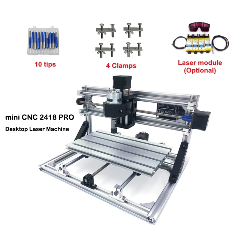 Мини-фрезерный станок с ЧПУ 2418 PRO без лазера или с лазерной головкой 500 МВт/2500 мвт/5500 МВт, гравировальный станок с ЧПУ, фрезерный станок для резьбы по дереву, мини-фрезерный станок с ЧПУ «сделай сам» с управлением GRBL