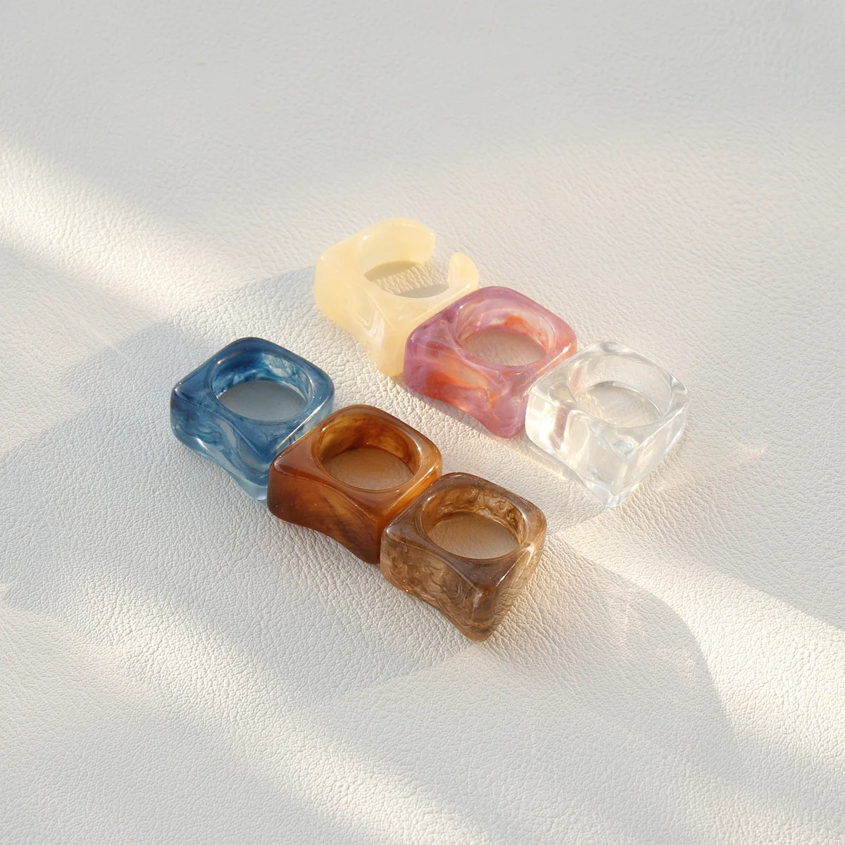 Набор геометрических квадратных акриловых колец из смолы для женщин...