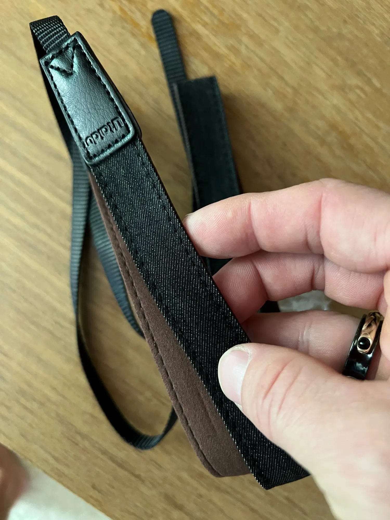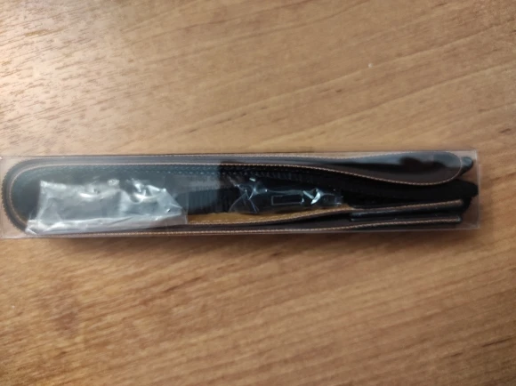 Для меня данный ремень оказался слишком широкий - не очень удобно носить на шее. Почему в характеристиках не указали ширину? Не понятно. Но есть с чем сравнить. Фото прилагаю. Другой производитель сделал поуже, что значительно удобнее. Заказ шёл около месяца.