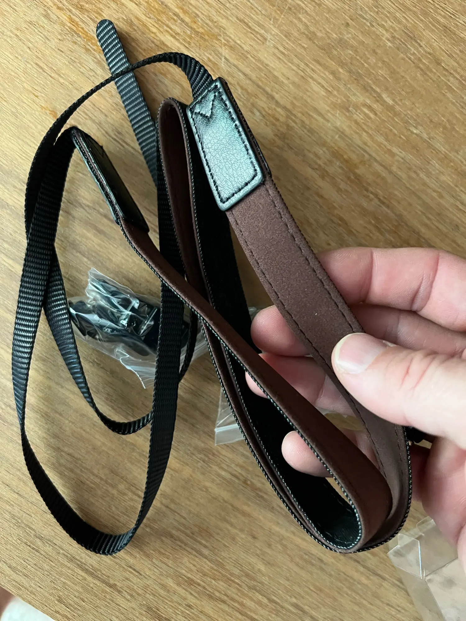 Очень хороший ремешок и очень комод для того, чтобы взять в передней части или в качестве сумки из натуральной кожи. Регулируется, а максимальная очень длинный, шло хорошо для высоких людей.