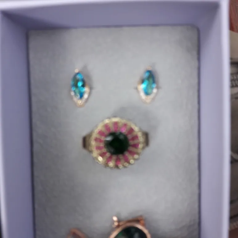 Красивый набор.Делала большой заказ у продавца,но к сожалению осталась им не очень довольна.Все украшения небольшого размера,совсем неуместно смотрятся на ушках взрослой женщины,так же и кольца с маленьким камушком просто теряются на руке.Но за качество и обслуживание ставлю 5 звезд.
