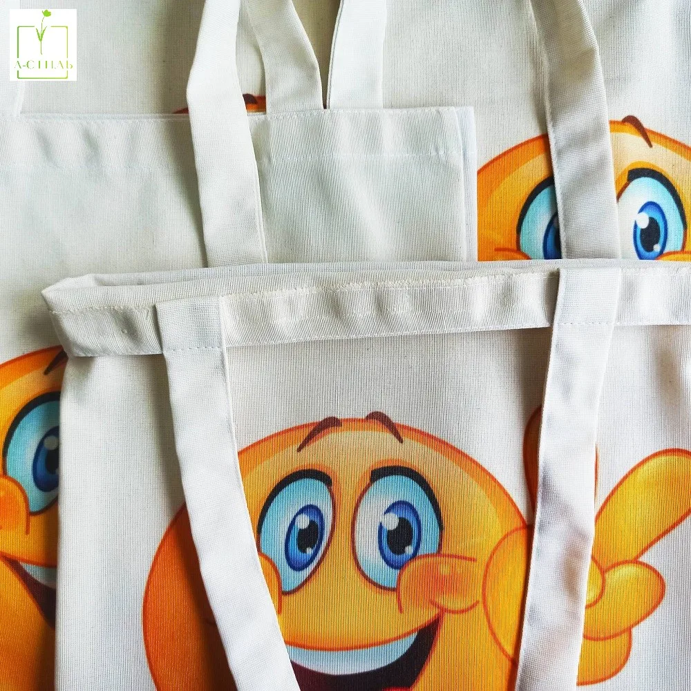 Предлагаем вам экосумки-шопперы с полноцветным принтом изсмесовой хлопчатобумажной ткани – двунитки плотностью 220 гр.м.кв. Материалсумки имеет натуральный цвет сурового холста.