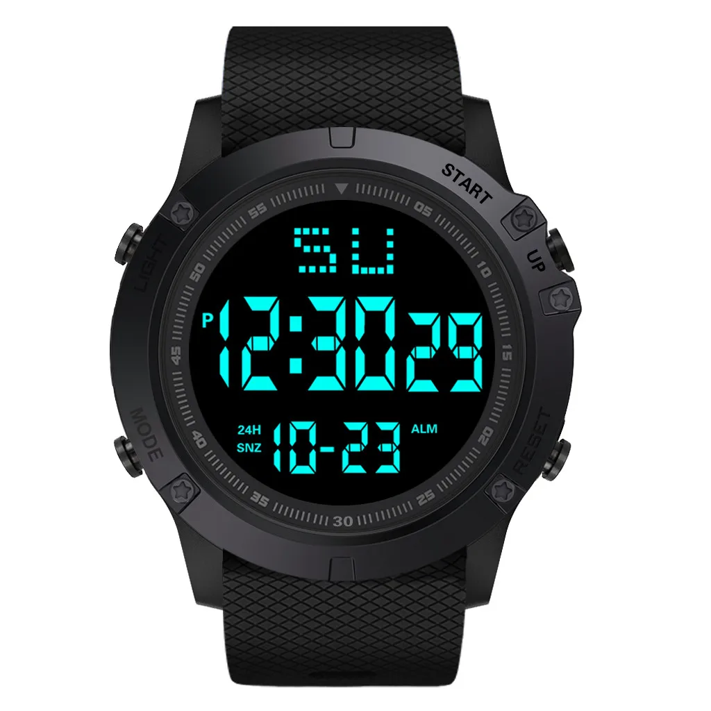 Модные мужские светодиодные цифровые военные спортивные резиновые кварцевые часы с будильником водонепроницаемые