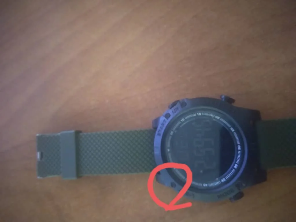 Часы поставляются с сломанной кнопкой, как указано на прилагаемой фотографии. Кнопка, которая включала подсветку, появлялась сломанной или выпавшей. Я попробовал проверить, могу ли я найти его в упаковке, но не мог его увидеть. Чтобы активировать свет, я должен был использовать предмет, чтобы вставить и нажать его, как шариковая ручка. Я не счастливый с часами.