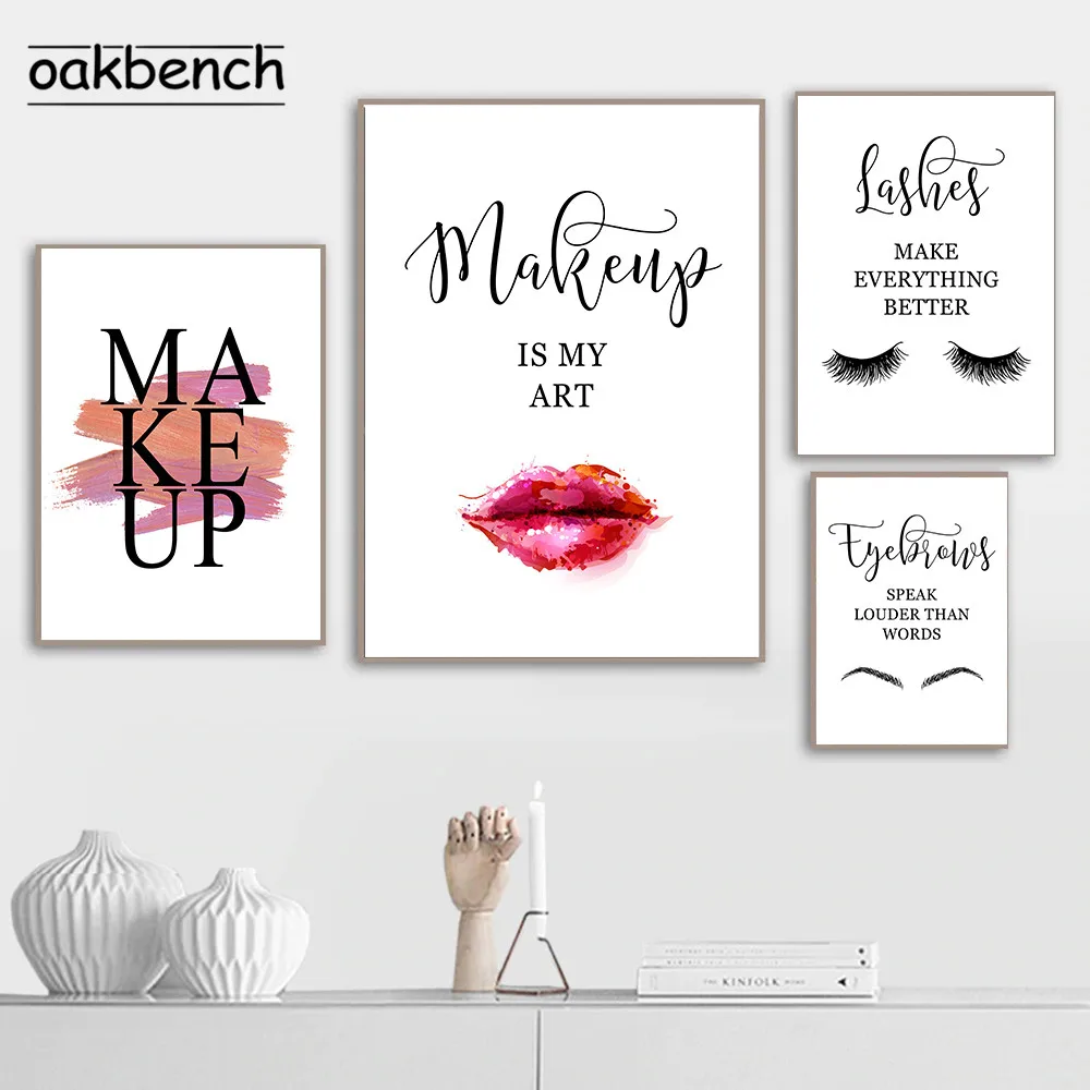 Модный постер для макияжа Художественная печать губы ресницы Холст Картина флакон духов плакаты скандинавские настенные картины для девичника декор комнаты